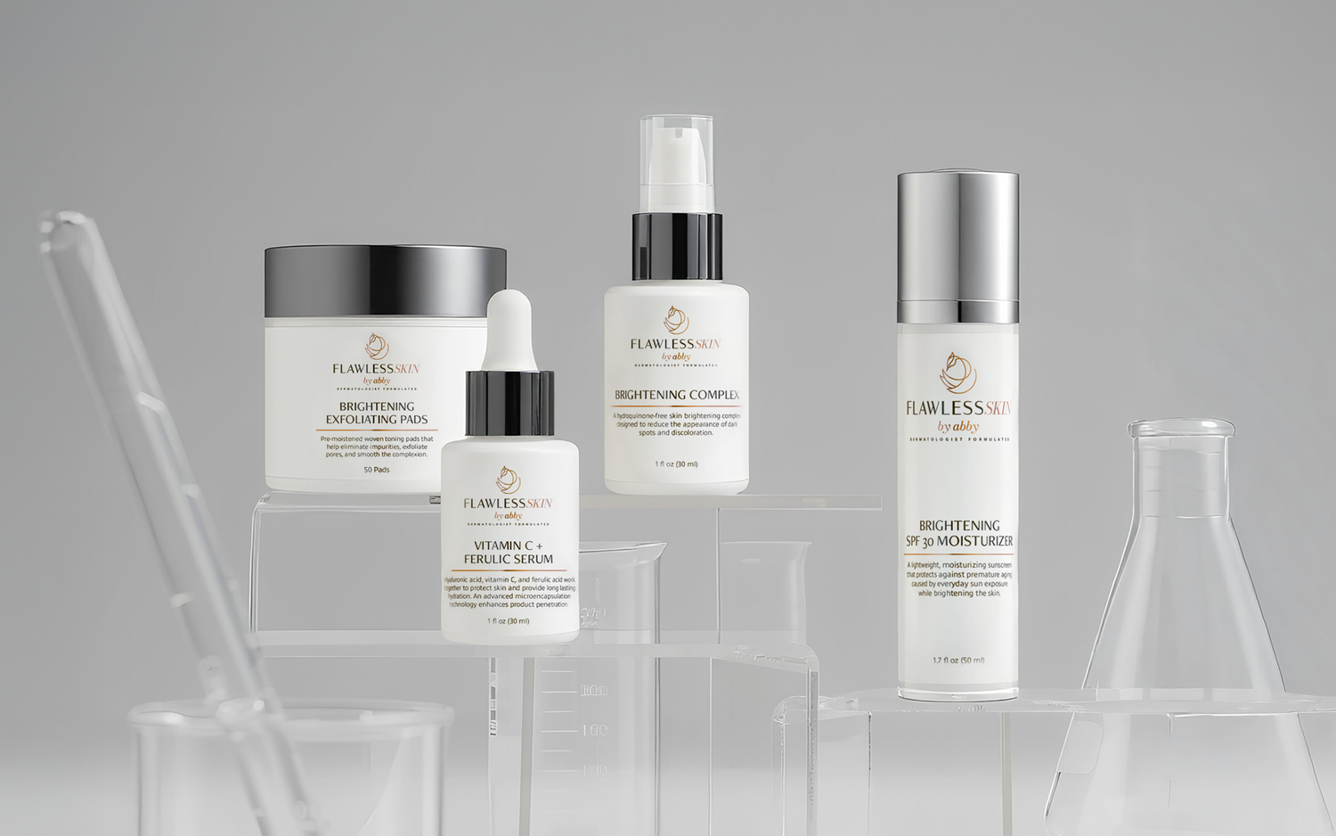 Infused with Vitamin C, Ferulic Acid, and Botanical Extracts, this collection targets discoloration and restores brilliance.